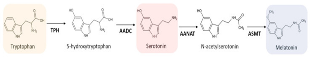 D’un point de vue hormonal, il faut savoir que la production de mélatonine est un phénomène complexe engageant plusieurs réactions chimiques. Dans les grandes lignes, tout commence avec une molécule de tryptophane qui est transformée pour aboutir à la production de sérotonine. Cette hormone, connue comme étant l’hormone du bonheur et du bien-être, agit quant à elle comme un précurseur de la mélatonine. Elle permet en effet d’engendrer la production de mélatonine dans la glande pinéale via une réaction chimique intermédiaire.