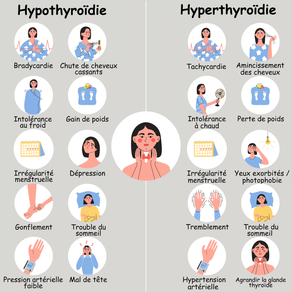 Pour ce qui est de l’hypothyroïdie, on retrouve bien souvent :